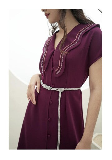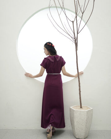 Full-length gown with button openings, oversized lapels with our signature embroideries. Rope-belt is included