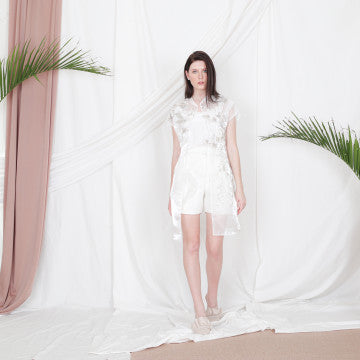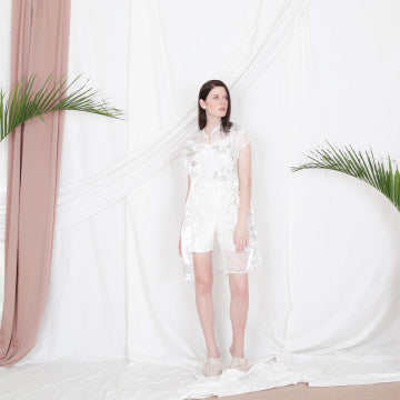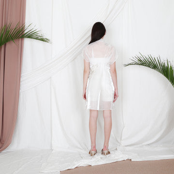 Pleated midi-outer made with premium organza material and accentuated with sequined embroideries