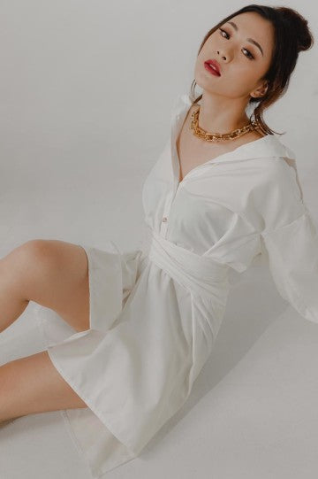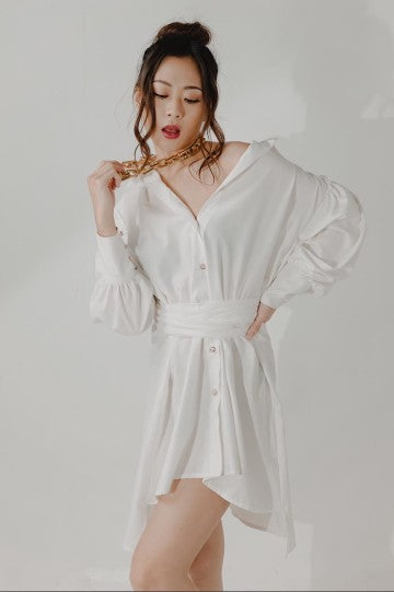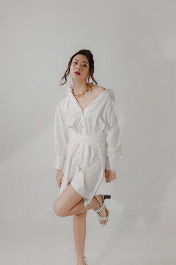 Loose-fitted shirtdress with attached belt to cinched your waist