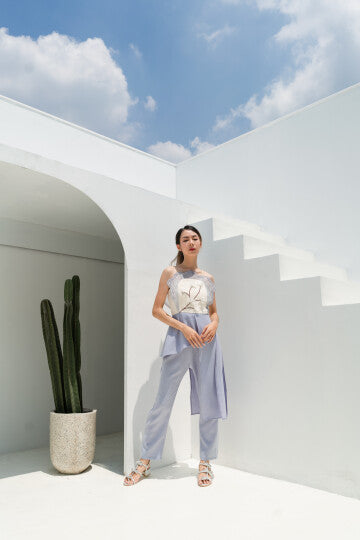 A set of two-toned top & trousers, detailed with our signature ruffles & embroideries on the chest